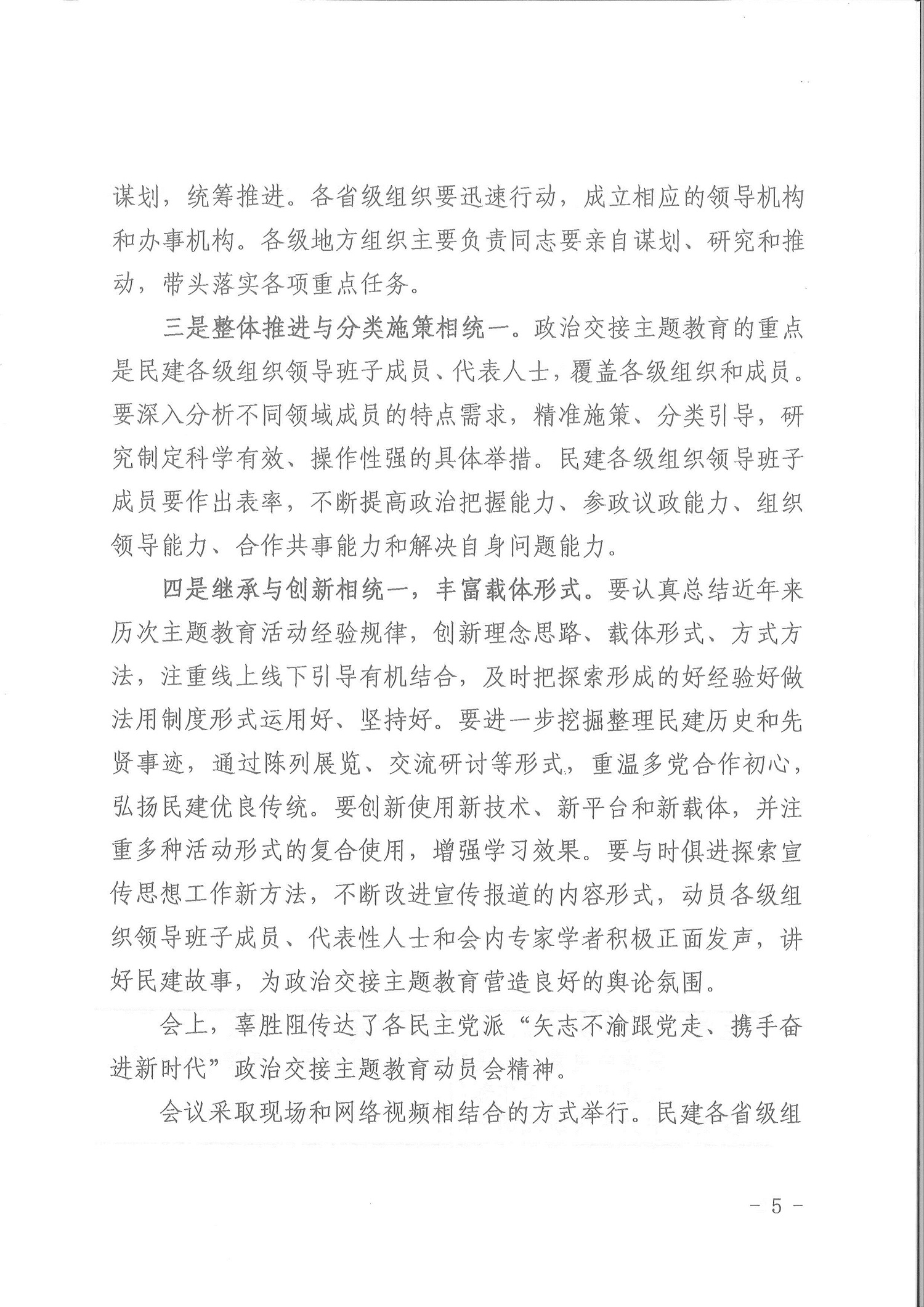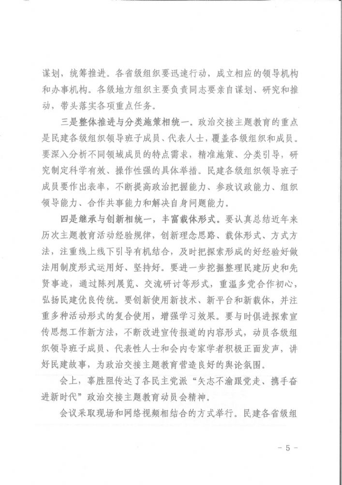 民建中央召开“矢志不渝跟党走、携手奋进新时代”政治交接主题教育动员部署大会