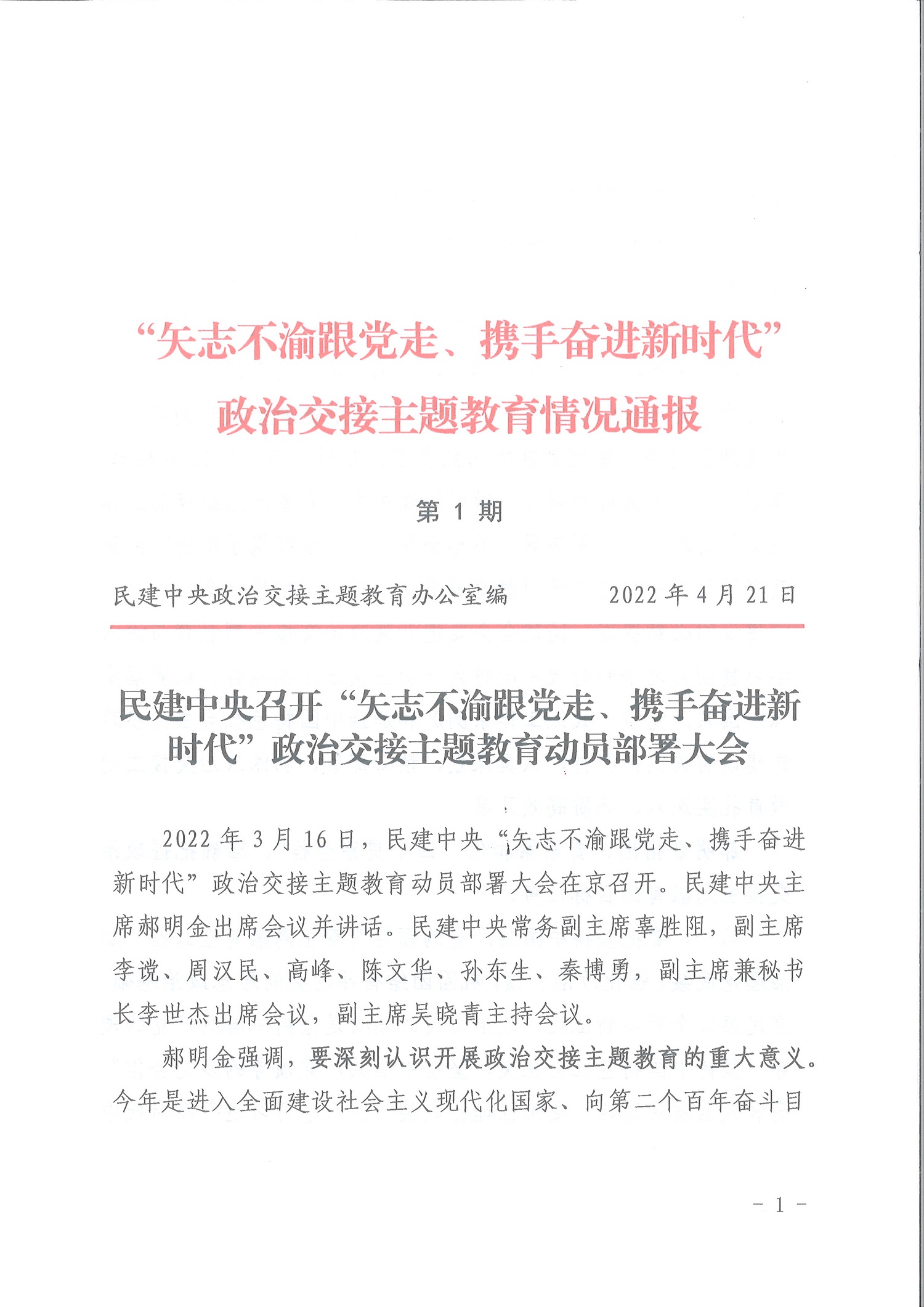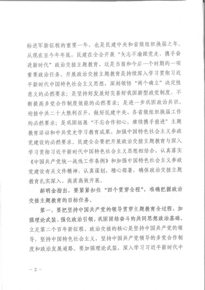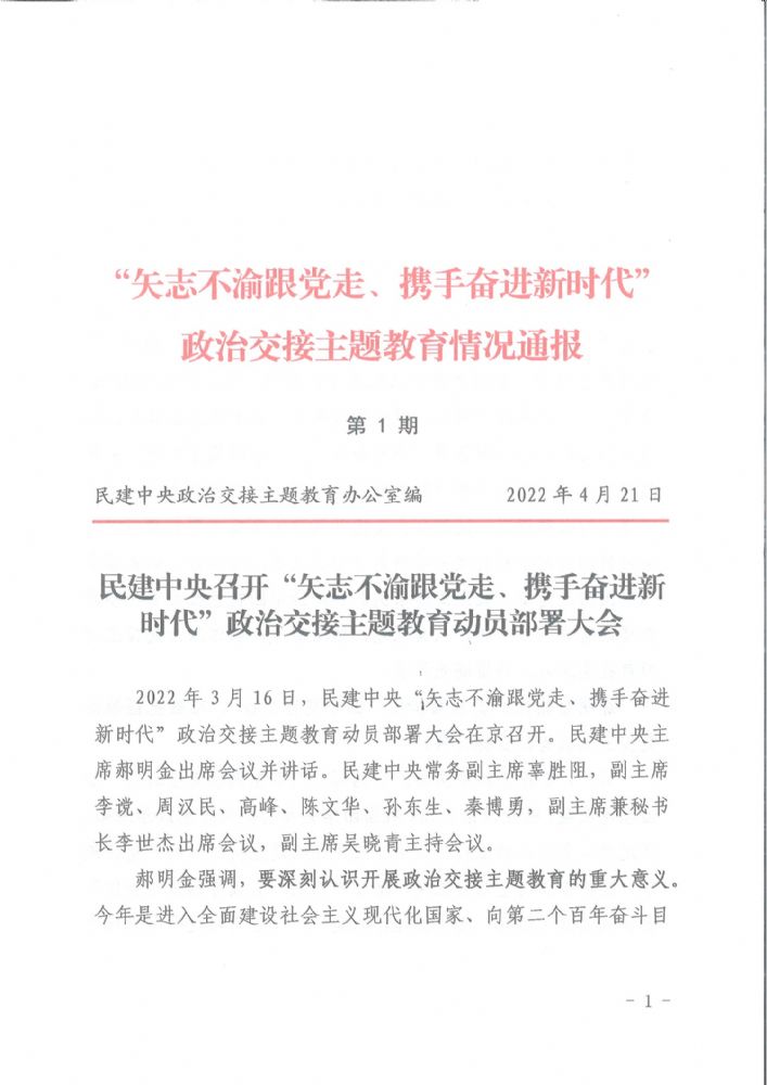 中国民主建国会重庆市委员会-民建中央召开“矢志不渝跟党走、携手奋进新时代”政治交接主题教育动员部署大会